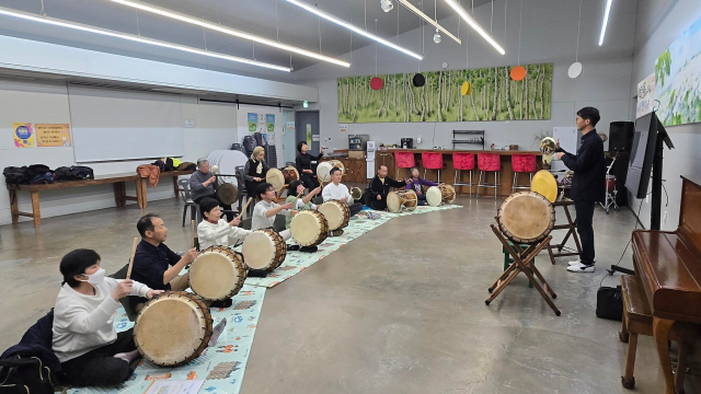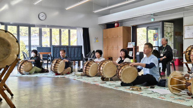 짧은 시간이었지만 사물놀이 연습을 엄청 열심히 하셨고요, 선반 풍물놀이 체험까지 재미나게 진행했습니다.