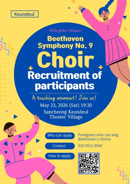 2026 마을예술제_베토벤 합창공연 외국인 참가자를 모집합니다! 페이지 정보 작성자 진주큰들 작성일2025.12.23 조회24회 댓글0건 본문 세계 시민들과 함께 부르는베토벤 9번 '합창' 공연 외국인 참가자를 모집합니다~많은 관심 부탁드려요^^ 다음글 목록