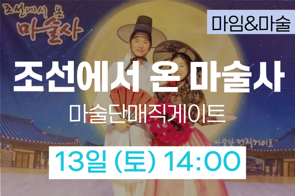 조선의 한량 허선달과, 기녀 매향이 시간여행을 넘어 펼치는 전통과 현대가 어우러진 퓨전전통 마술! 아이부터 어른까지 함께 즐기는 조선판 매직쇼!