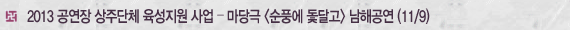 ±× »ç¾÷ÀÇ Çϳª·Î, 11¿ù 9ÀÏ <¼øÇ³¿¡ µÀ´Þ°í>¸¦ °ø¿¬Çß½À´Ï´Ù.