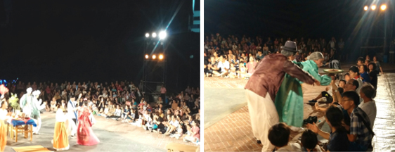 | 8월 12일 | 화순 <순풍에 돛 달고> 공연을 초청해 주신 화순 평화 통일 한마당에서 공연이 잘 될 수 있도록 여러 가지로 신경을 많이 써주셨습니다. 배우들 대기 공간에 쓰일 개복청, 분장 테이블은 물론이고 날씨가 덥다고 실내 분장실까지 따로 마련을 해주셨어요. 그리고 점심, 저녁 식사에 아이스크림, 꽁꽁 얼린 시원한 물까지 챙겨 주셨지요. 덕분에 30도를 웃도는 더위 속에서도 무대 설치부터 공연, 마치고 철거까지 잘 해낼 수 있었습니다. 고맙습니다!! |